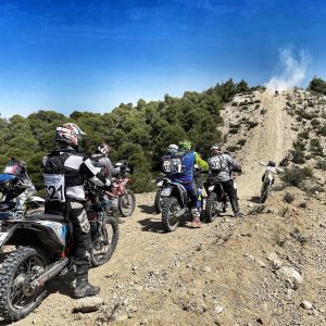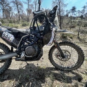 Je vois Félicien (un pote de la team PETOKASK/NOMADAS) à 4 pattes dans la montée, sa meule posée sur le côté, lui exténué. En voulant l’éviter, je tombe à mon tour, presque à l’arrêt. Je me remets en selle, et grâce à un des types de l’orga qui me pousse juste ce qu’il faut, j’arrive à finir la grimpette. Je comprends mieux pourquoi Félicien est mort avec sa 990 ! Rien que de la relever, c’est chaud, mais la relever pour repartir, c’est l’enfer ! Mieux vaut dans ce cas redescendre, reprendre de l’élan, et passer l’obstacle d’un coup… Enfin, c’est ce que je me dis sur le moment.