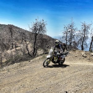 On continue notre route, et ça se passe plutôt pas mal jusqu’à ce que Thiag pose sa moto presque à l’arrêt. Le problème, c’est qu’elle a dû tomber pile sur le rocher qui dépassait plus que les autres de la piste, et il a percé son réservoir avant gauche. On ne s’en rend pas compte tout de suite et on continue avant d’arriver sur une autre difficulté !