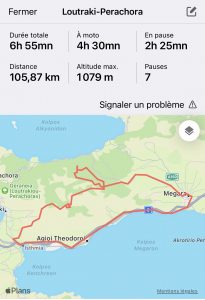 On patiente un bon moment, et on se retrouve à tous rentrer en convoi à Loutraki.