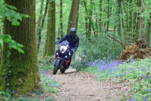- Au freinage, tout est question de dosage, et d’un subtil dosage… Alors, même si tu as l’ABS, l’ESC, le MTC, etc. bah… Vas-y mollo ! Tu freines en anticipant au max les distances (attention, au début, c’est trompeur !) et le revêtement (tu ne freins pas aussi bien sur du sec que sur de l’herbe, tu t’en doutes)… Et n’oublie pas que les freins fonctionnent eux de la même manière que sur route : l’avant pour t’arrêter, l’arrière pour équilibrer (ou pour déraper…)