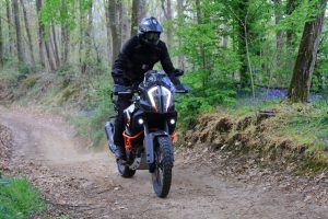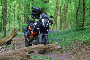 Commençons par la pression des pneus. Sur mon 1290, je me mets globalement toujours à +/- 2 bars à l’avant et à l’arrière. C’est un bon compromis. J’ai essayé une fois en étant réglé en config route, et l’inconvénient c’est que ça absorbe beaucoup moins les chocs, et que ça rebondit beaucoup plus. Après, si tu dois te faire 50 bornes de sable, tu peux descendre à 1,7 mais bon, pour commencer, 2, ça passe partout.