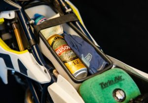 Pour ma part, je mets tous les outils dans des sacs étanches et je cale tout ça dans la boîte de rangement Rade Garage que j’ai installée sur ma 701 Enduro, ou dans une sacoche étanche installée sur le porte paquet de la 1290.