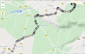 Quand tu abordes une piste non carrossable, ou du off-road pur, je clique sur la fin de la section. Ca te fait une immense ligne droite, et évidemment, c’est rarement le cas sur le terrain. Du coup, je clique sur la trace au niveau de chaque virage pour ajouter des points. Je les bouge au fur et à mesure (click and drop) pour conserver une trace d’apparence « naturelle ».