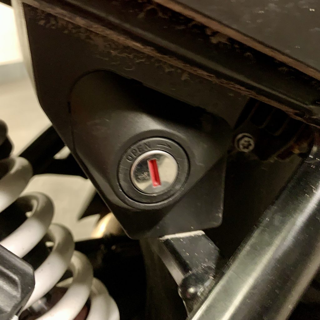 En l’occurrence, je devais faire un switch de batterie avec D. (si tu veux savoir pourquoi, file lire ce petit récit du Hard Alpi Tour et de nos aventures...) et le jour J, j’applique strictement la procédure ! Mais rien… Il ne se passe rien… Cette foutue selle refuse obstinément de bouger… Normal ! La clef tourne dans le vide, comme si le mécanisme d’entrainement… N’entrainait plus !