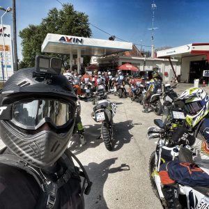 Olivier sur sa 125 défonce tout ! Je le vois dans le rétro avec sa roue avant qui a la bougeotte… Je sais même pas comment il tient sérieux ! En gros, t’as une moitié de roue qui part à droite, l’autre moitié qui part à gauche ! C’est un pur exercice de freestyle parce qu’objectivement, il doit être incapable d’anticiper à quel endroit passera quel côté de sa roue 😅. Mais bon il gère bien le bonhomme !