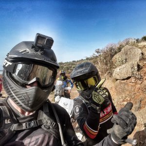 Pour ce premier jour des Marathon Stages, je roulerai avec Olivier. Je t’en ai déjà parlé, c’est le gars de « Vie de Motard ». Mais si… Il a voilé sa jante le premier jour après une bonne culbute. Ensuite, on a tenté d’aller récupérer une autre jante à 100 bornes du bivouac. Pas de bol, impossible de la monter. Du coup, il roule avec une roue avant qui a la tremblotte.