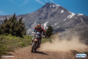Après, le Hellas Rally te propose deux options : le mode adventure, et le mode race… Mais bon, avec une KTM dont le slogan est « ready to race », tu imagines bien que ce n’est pas le mode adventure qui m’intéresse. Enfin, je devrais dire qui « nous » intéresse, puisque T. serait également de la partie !