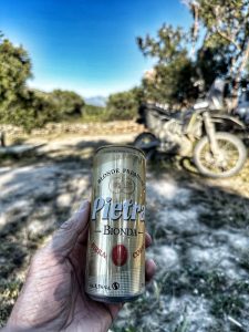 Qu’à cela ne tienne ! Je me pose à un café, et là, coup de bol à nouveau ! Un Corse tourne autour de ma meule ! On engage la discussion, et il me raconte qu’il n’a jamais eu le courage de passer le permis moto, mais qu’il roule en 125 TWR ! Cool…