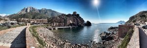 Parce que quand tu arrives en haut du col, tu es à 1000m d’altitude grosso modo, et là, tu découvres un panorama exceptionnel avec la mer de part et d’autre, d’est en ouest, et les montagnes, de part et d’autre, du nord au sud !