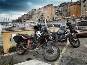 Bon après, de Paris, la Corse, c’est loin… Et franchement, l’idée de me faire la jonction par la route à moto avec une côte en vrac ne m’enchantait pas. Alors j’ai mis la meule sur une remorque (d’ailleurs, si tu cherches un bon plan pour en louer une en région Parisienne, dis moi, et je te mets en contact), et direction le sud ! Bon, faut dire que j’avais la chance de pouvoir tout laisser en sécurité à Bandol… Ça aide.