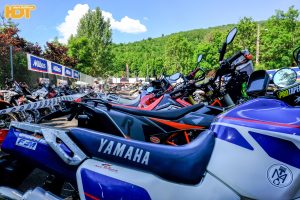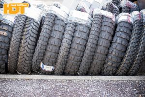 On a posé la camionnette, déchargé les motos, et… D. en a profité pour faire changer ses pneus ! Bah oui ! Top l’organisation ! Un deal a été négocié avec Mitas, et tu pouvais commander tes pneus à un tarif plutôt avantageux (je dirai -5% à -10% par rapport au prix le plus bas sur le web) et ils te montaient ça sur place direct.