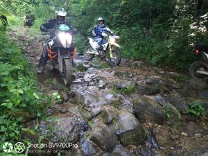 A vue de nez, je dirais que tu as 70% de off-road sur l’ensemble, les 30% restant étant les jonctions bitumées. Mais quand je te parle de off-road, ne va pas croire que je parle de piste roulante pour gros 4X4… Non non… Là, je te parle de passages dans lesquels tu t’en sors déjà bien si tu portes ton VTT sur l’épaule, en aucun cas si tu t’y aventures avec un maxi-trail…